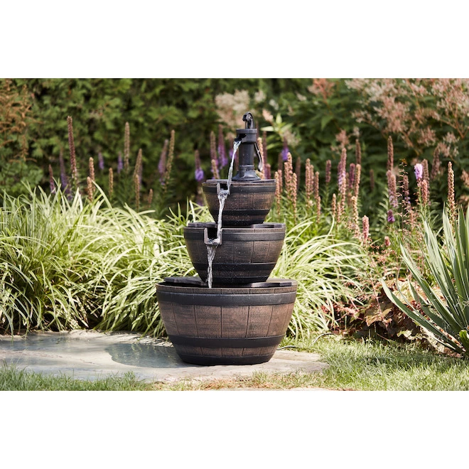 This brown fountain will add a beautiful touch to your exterior decor. It is crafted and painted by hand.
