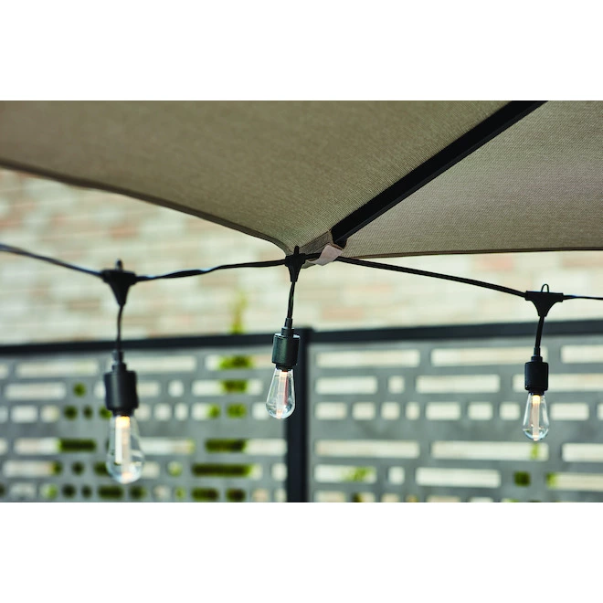 Protect yourself and your guests from bright sunlight with this Style Selections 11-ft cantilever umbrella. Its modern, tiltable design easily covers every possible angle and can be rotated 360° for full-shading flexibility. This patio umbrella is made of fade- and water-resistant olefin fibre canvas. Its sleek, durable, rustproof frame is made of powder-coated aluminum. It also has a 4-piece durable plastic base that requires 220 lb. of sand for optimal stability. This umbrella is backed by a 1-year limited warranty.