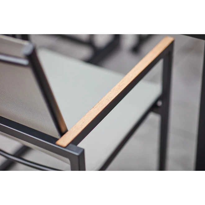 Beautiful and modern Paxton sling stacking chair from Style Selections. Its durable powder coated steel frame is rust resistant. 1-year warranty.