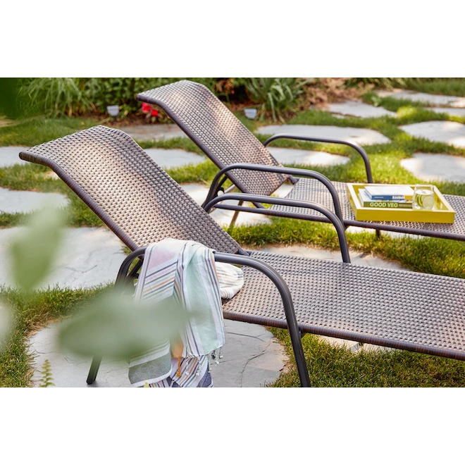No one can resist the comfort of a lounge chair. That’s why this outdoor chaise lounger from Style Selections’ Pelham Bay collection is the perfect choice for your exterior space. Made of heavy-duty steel with hand woven PE wicker, this model was made to last. It’s sure to provide you with maximum comfort with its armrests and back-tilt positions that allow you to sit up when you want to read a book or lie down when you want to take a snooze. It truly is the perfect addition by the pool or on a deck or patio! Plus, no assembly is required, and its stackable design makes it easy to store. This lounge chair comes with a 1-year limited warranty.